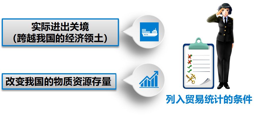 根据联合国国际货物贸易统计标准,一国的进出口商品贸易统计应记录所有因进、出该国经济领土而引起该国物质资源存量增加或减少的货物。包括我国在内的世界大多数国家普遍依据这一标准制定本国的进出口商品贸易统计范围。