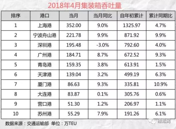 2018年前4个月全国港口成绩单出炉,看看你所在的港口表现如何?
