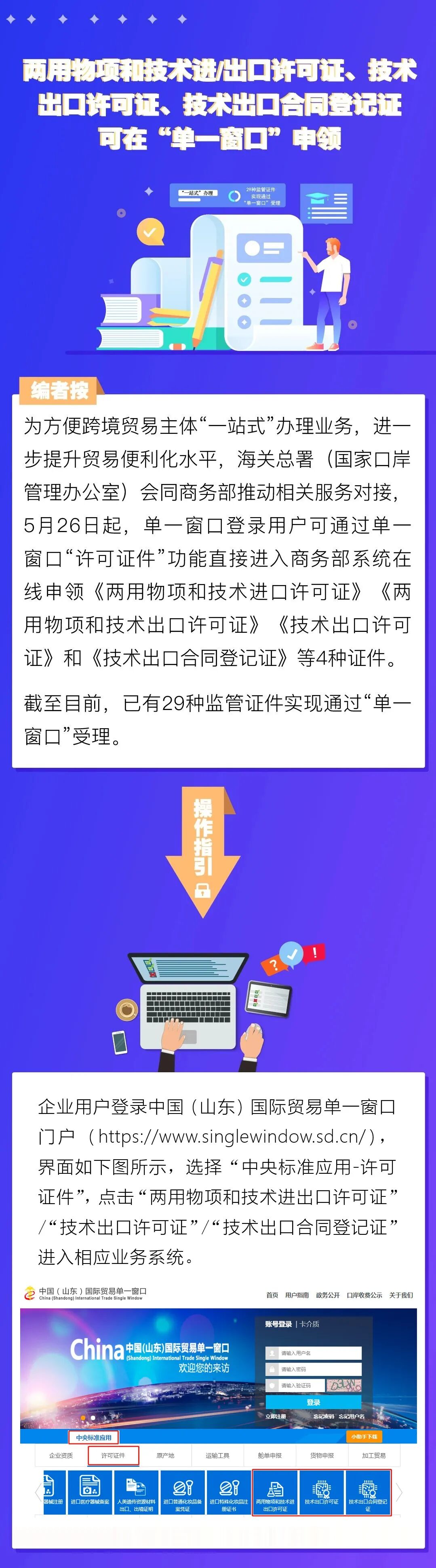 两用物项和技术进/出口许可证、技术出口许可证、技术出口合同登记证 可在“单一窗口”申领
